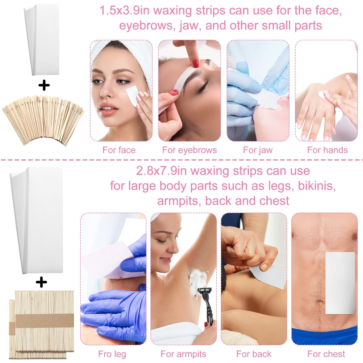 Factory Sales Disposable Wax Strips and Sticks Kit Non Woven Waxing Strips 500 Pcs Assorted Applicator Sticks Soft Wooden Facial Body for Eyebrow Hair Removal Spa Home Women Men Leg