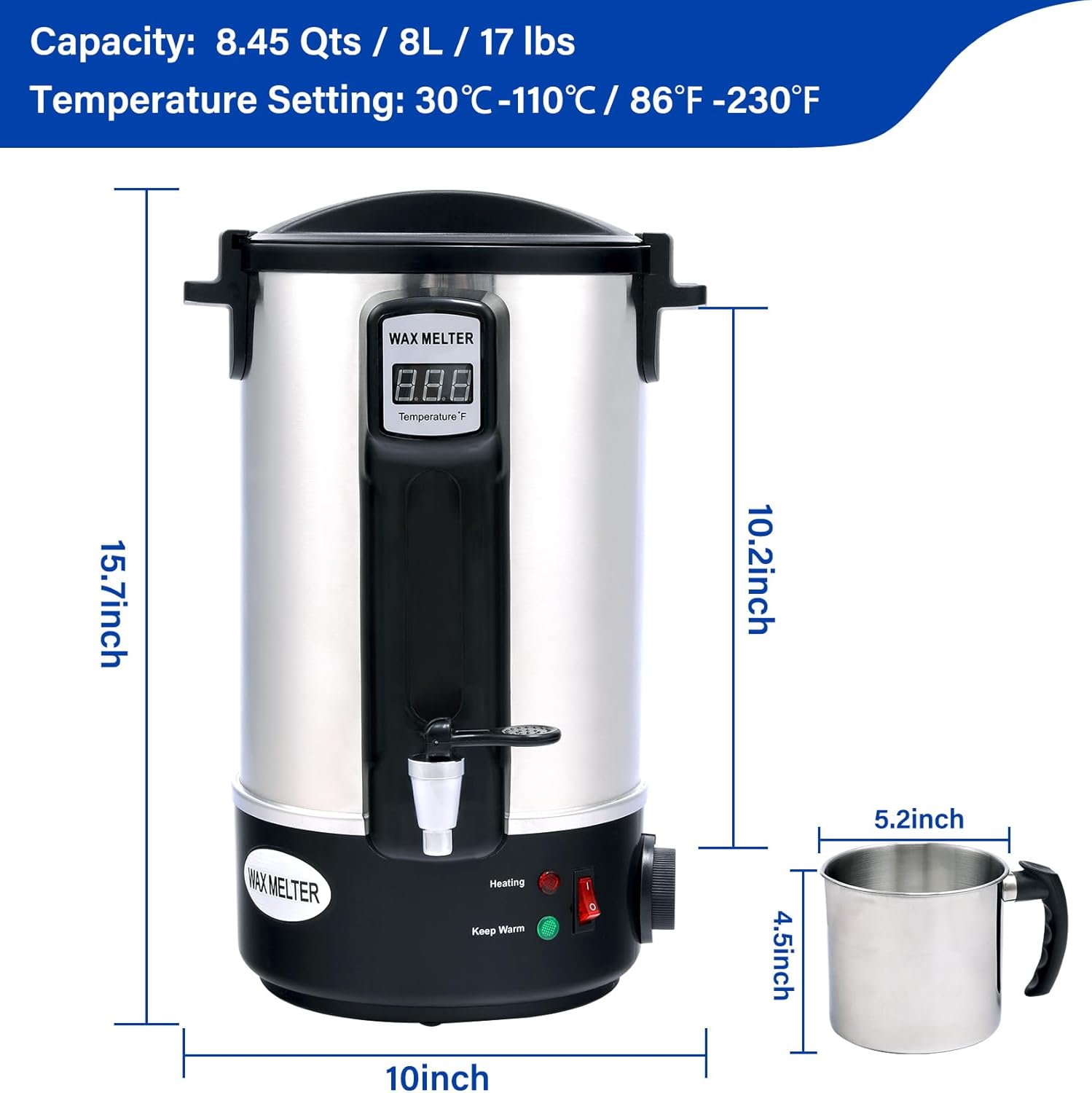 High Quality Wax Melting Pot 8.45Qts/17Lbs, Electric Non-Stick Candle Wax Melter Pot 8L, DIY Candle Making Kit for Adults, Soy Wax and Beeswax Candle Maker