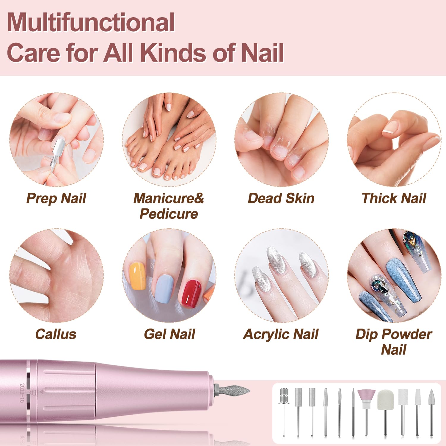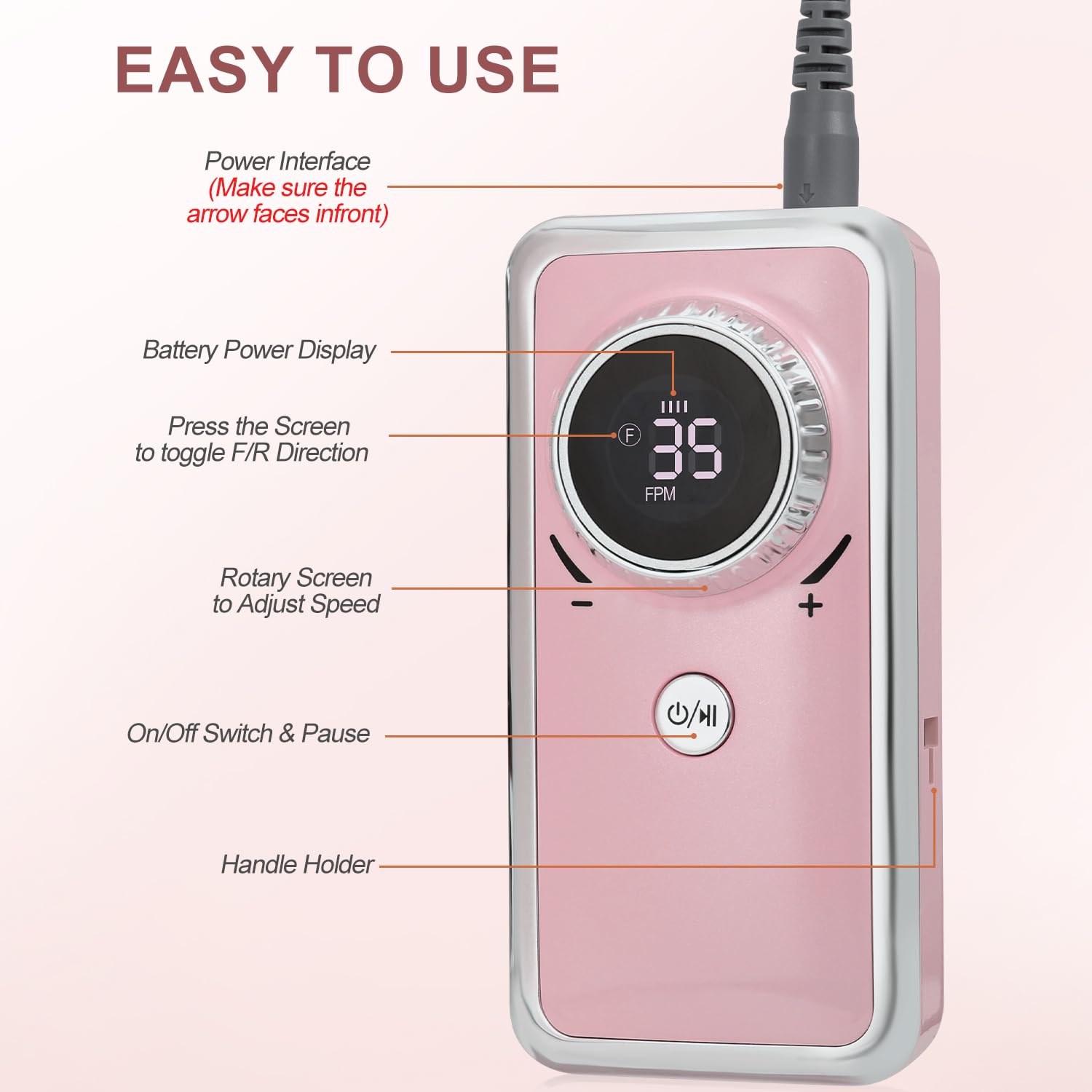 Portable Efile Nail Drill with 11Pcs Nail Drill Bits, Rechargeable Nail Drill Machine with LCD Display for Acrylic Nail Remove Gel Polish for Home Salon Use