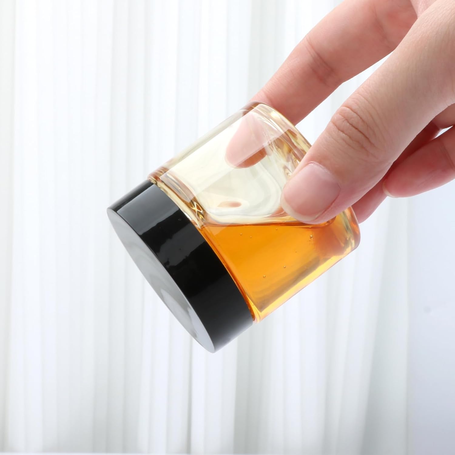 5ml Empty Glass Jars with Black Lid, Clear Airtight Cosmetics Container Bulk Refillable Tiny Sample Jar for Cosmetics, Lotion, Cream, Samples, Wax, Skincare, Travelling, Retail Store