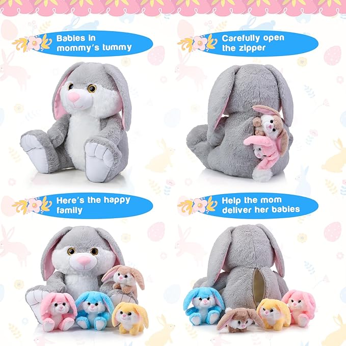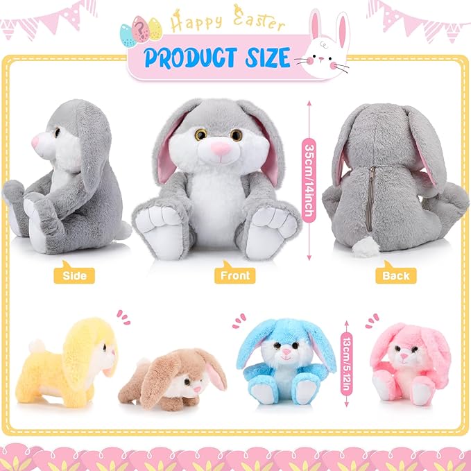 Wholesale Easter Bunny Stuffed Animal with Cute Baby Rabbit Floppy Ear Plush Toy Surprise Gifts for Kids Boys Girls