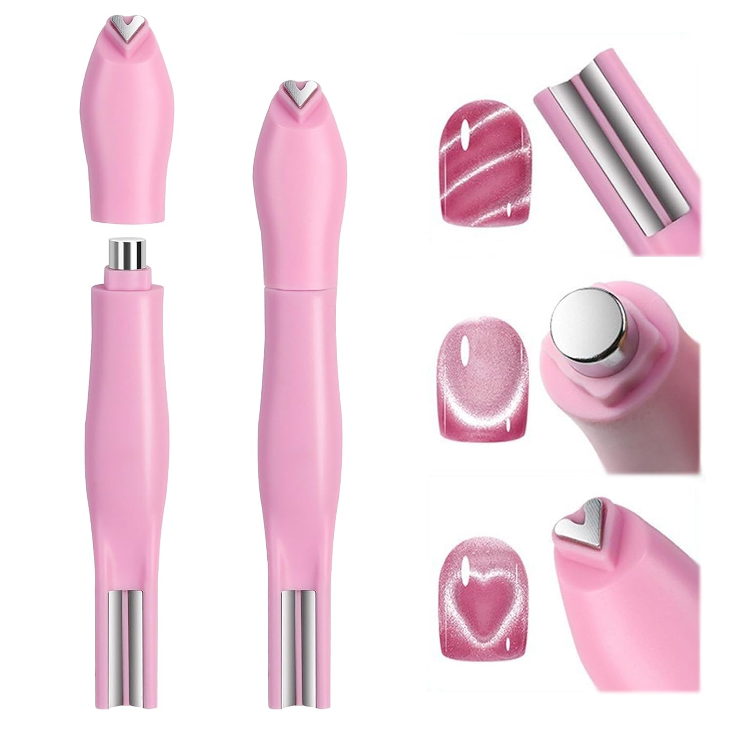 Multifunctional 3 in 1 Cat Eye Nail Magnet Set Tool Supplies, Pink Y-Shaped Magnet Bar Heart Cat Eye Tools Supplies for Nails, DIY Design Allowed for Women Nail Studio & Salon