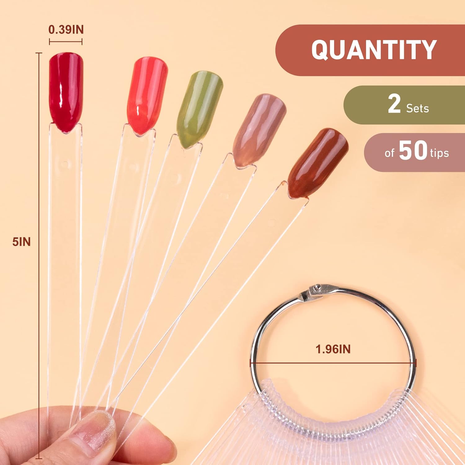 Best Price Clear Nail Swatch Sticks with Ring, 2Styles Fan-Shaped Nail Art Polish Display Tips, False Nail Sample Sticks, Nail Practice Color Display Polish Board for Nail Art Polish Salon DIY Women's Day