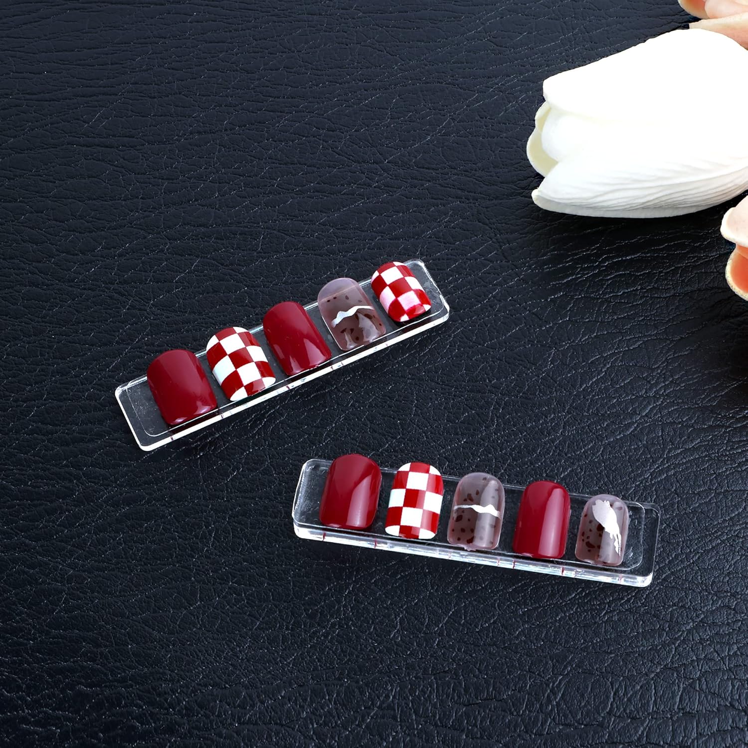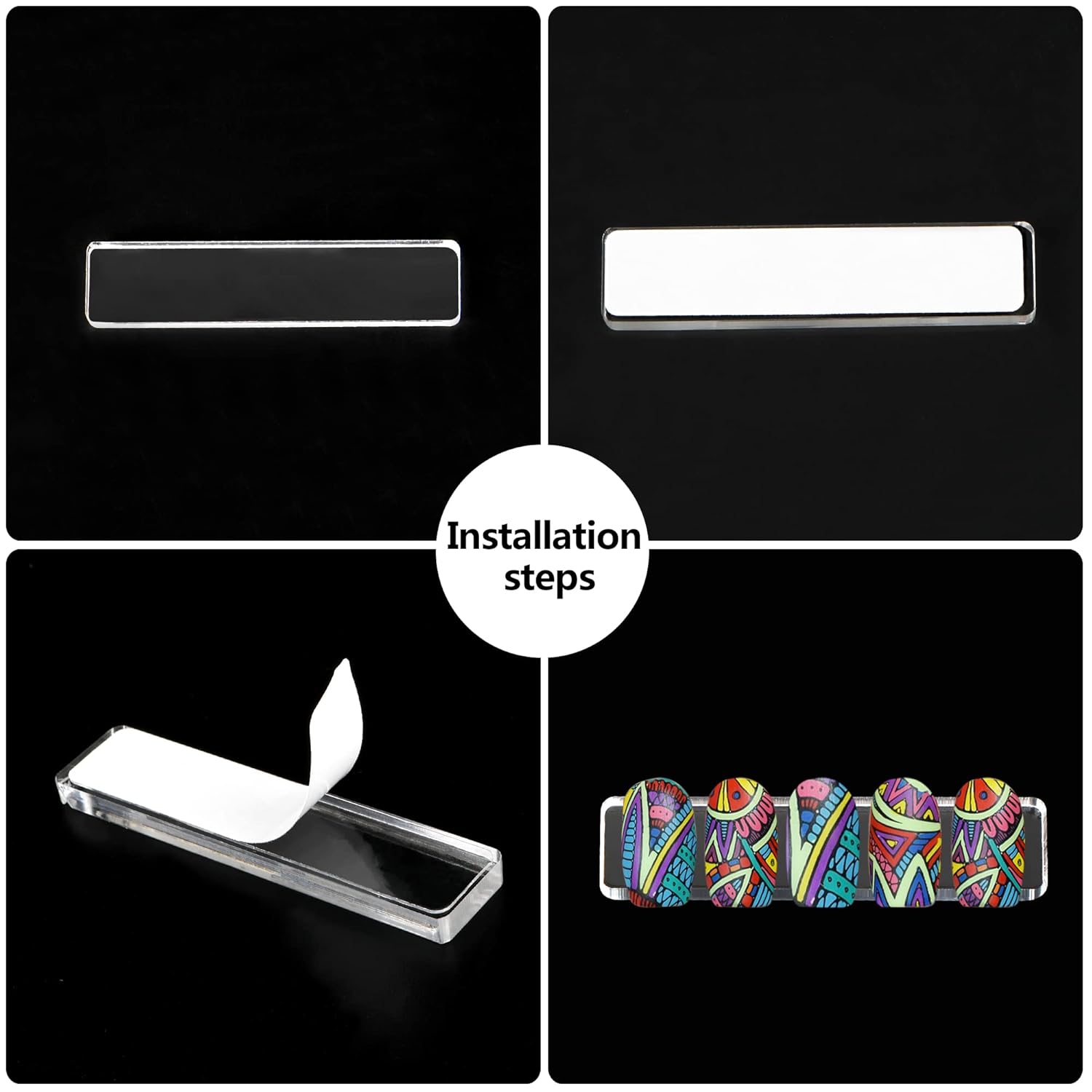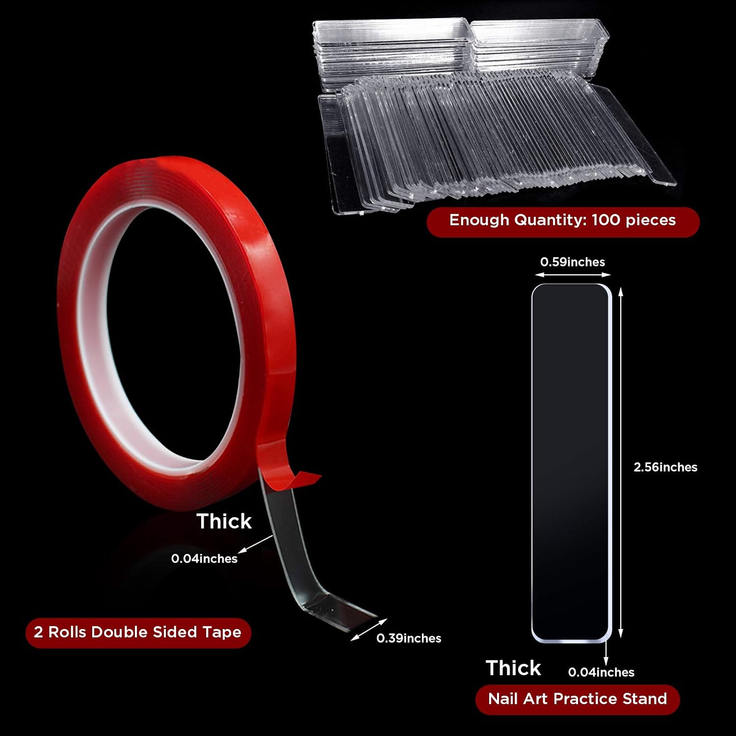 Hot Seller Transparent Nail Display Stand Holder with Double Sided Tape Nail Boxes Packaging for Press On Nail Art Acrylic Fake Nail Tips Display Stand with Removable Mounting Tape for Nail Salon and Home