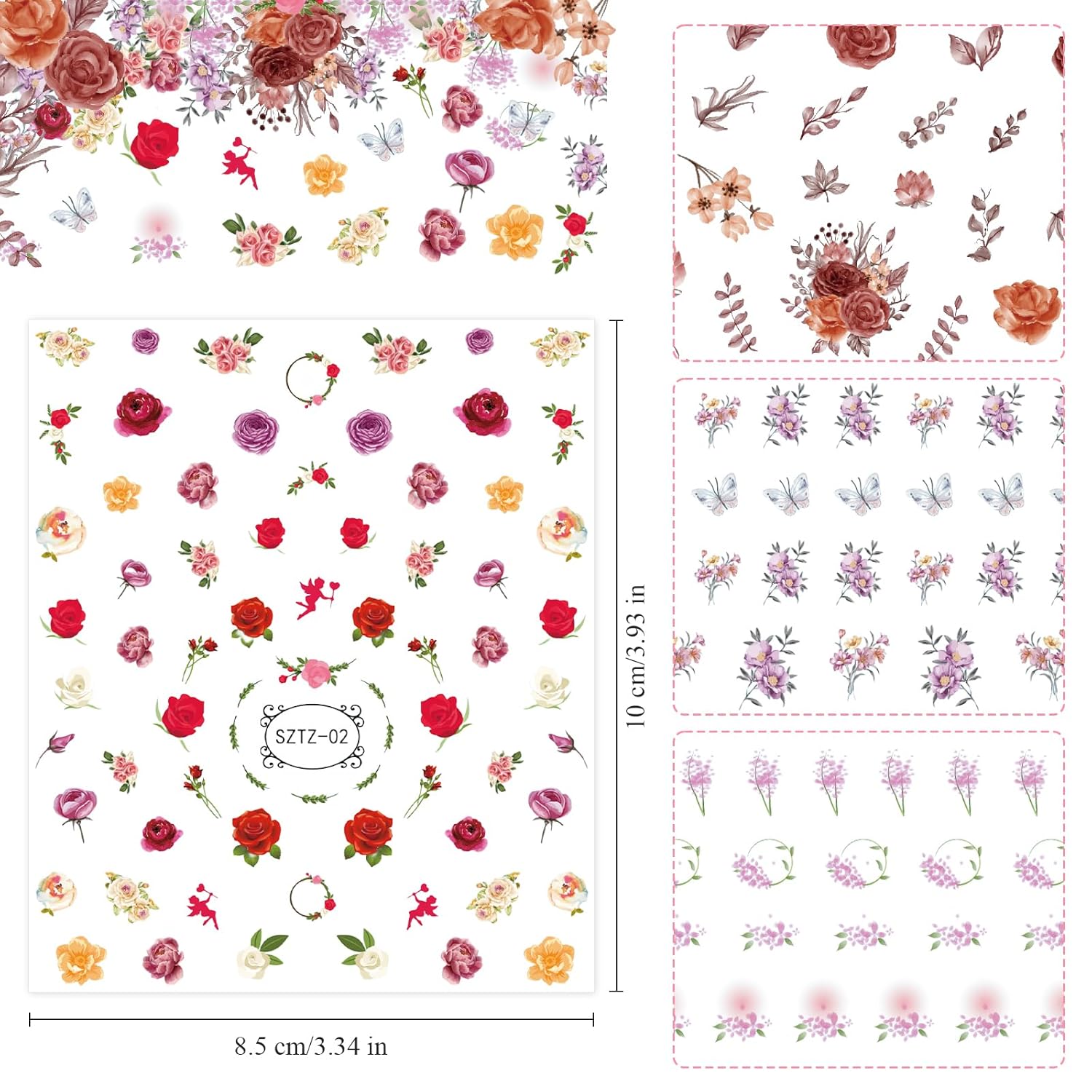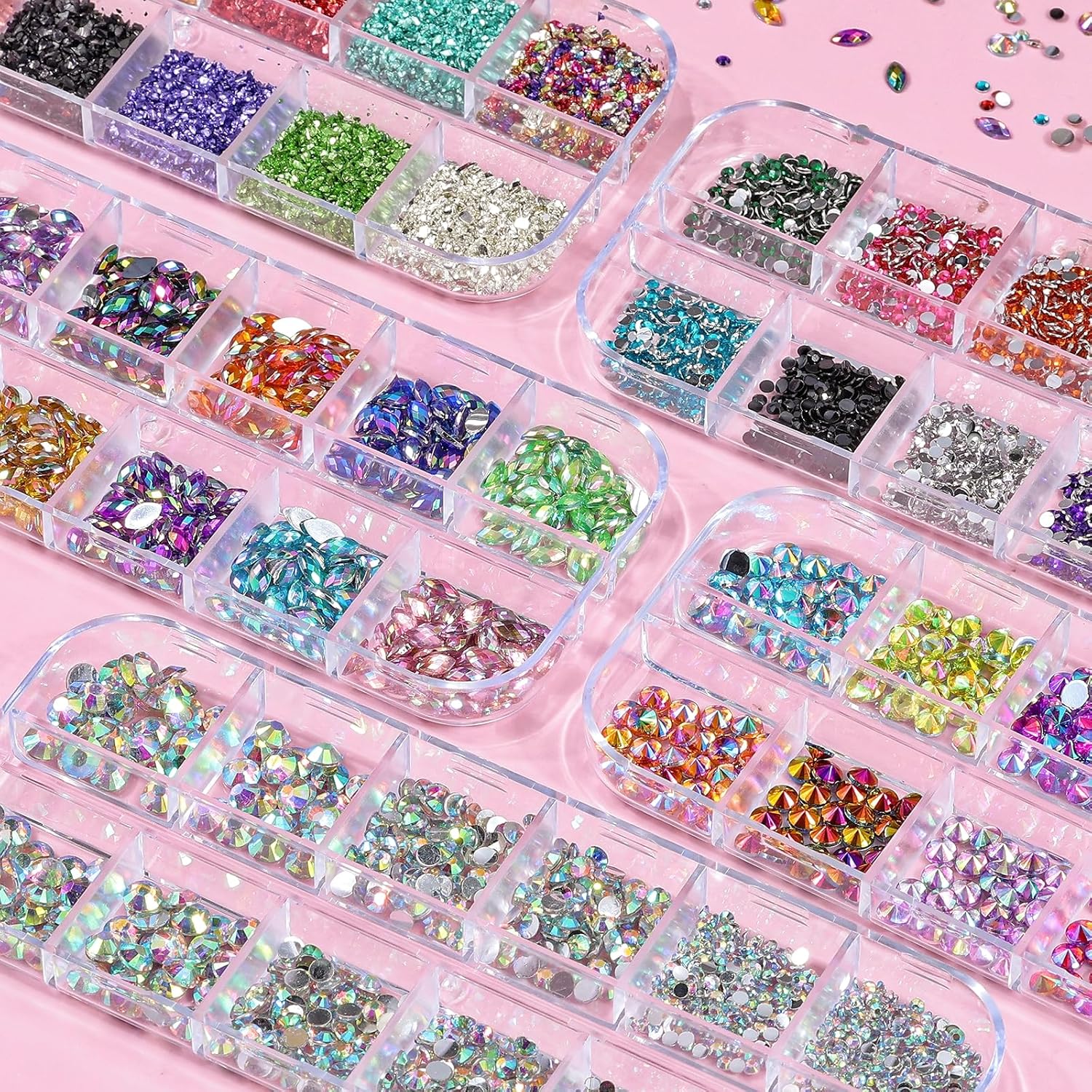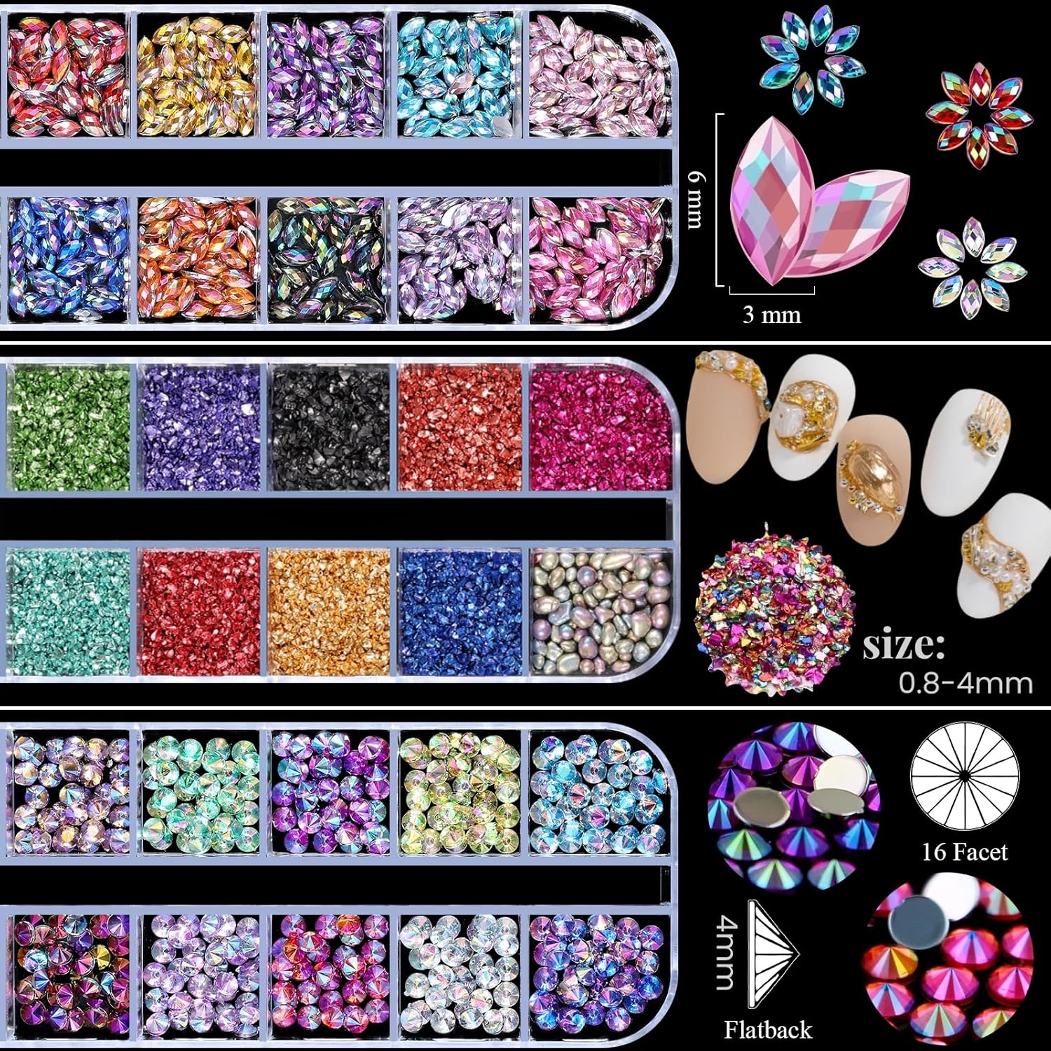Hot Selling Nail Art Rhinestones Kit 3D Flatback Horse Eye Rhinestones Irregular Nail Stone and 4 Sheets Flower Nail Stickers with a Curved Tweezers and a Nail Brush