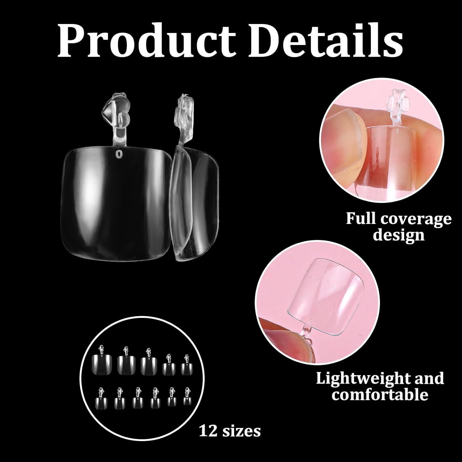 240pcs Toe Nail Tips Toenail Kit Squoval Fake Toe Nails Clear Soft Gel Toenail Tips Reusable Nail Kit Gels Press on Toes Nails Tip for Salon and Foot Pedicure Manicure
