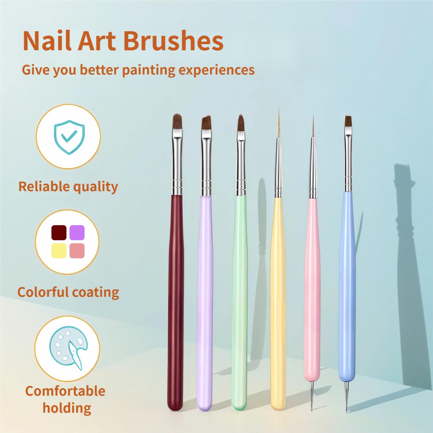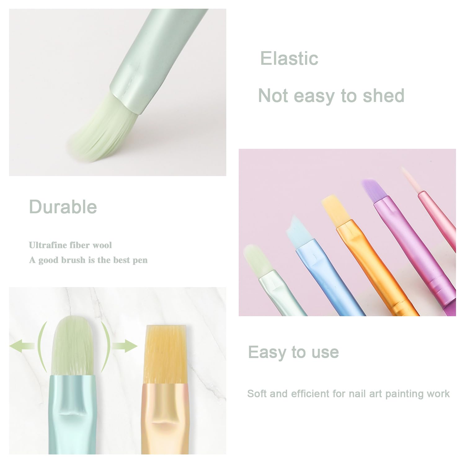 Good Price Gel Polish Nail Brush with Liner, Flat, Angled & Dotting Tips – Acrylic Nail Art Design Tools for DIY Manicure, Nail Extension, Salon Use – Pastel Colors with Gift Box